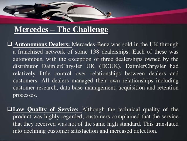 Students from any part of the world - be it Customer Relationship Management Case Study Mercedes Benz the UAE or USA Saudi Arabia or China Germany or Spain. Mercedes-Benz CEO Gets Tougher on Customer Service. Mercedes-Benz was sold in the UK through a franchised network of some 138 dealerships.